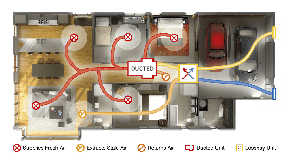 Air is distributed via insulated ducting connected to ceiling outlets. Ducting is the ultimate invisible solution for year-round comfort